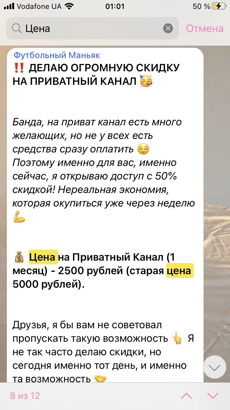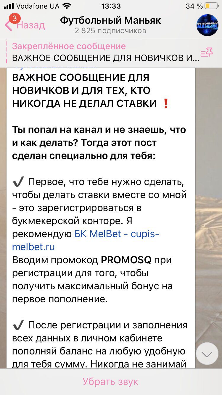 Каппер Футбольный Маньяк в Телеграмм – отзывы