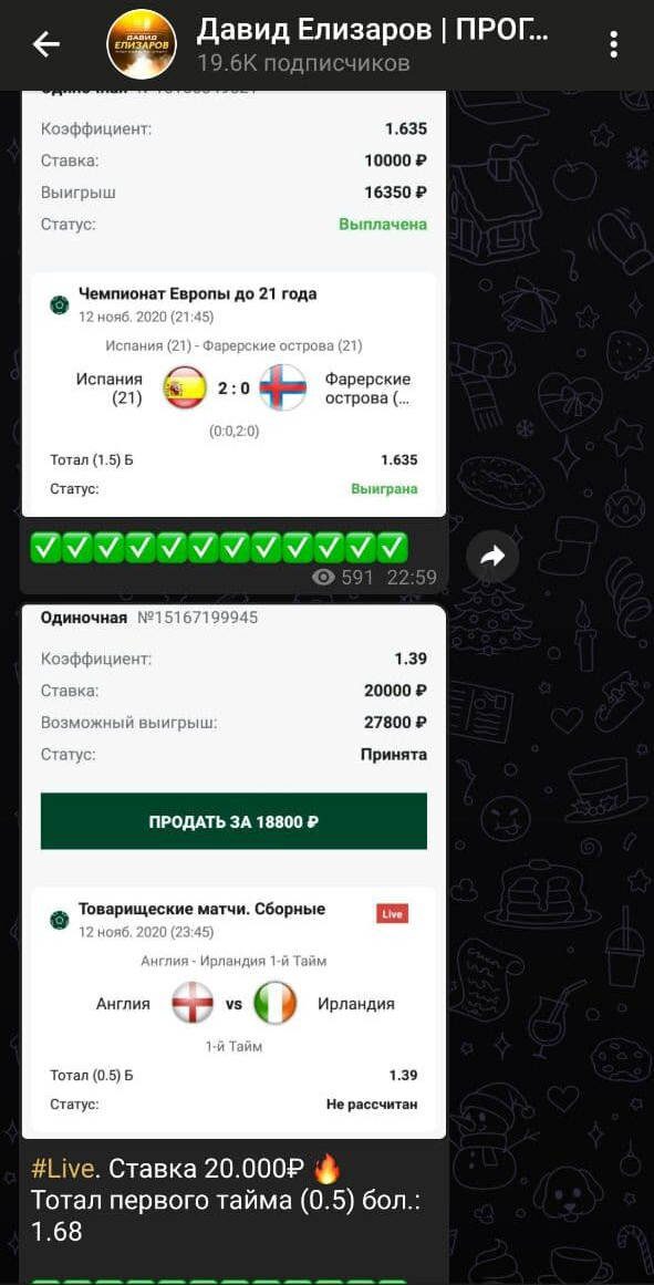 Каппер Елизаров Давид — отзывы, разоблачение Телеграмм канала