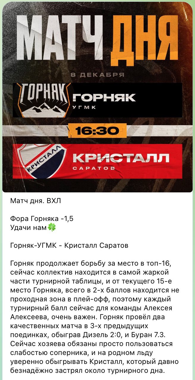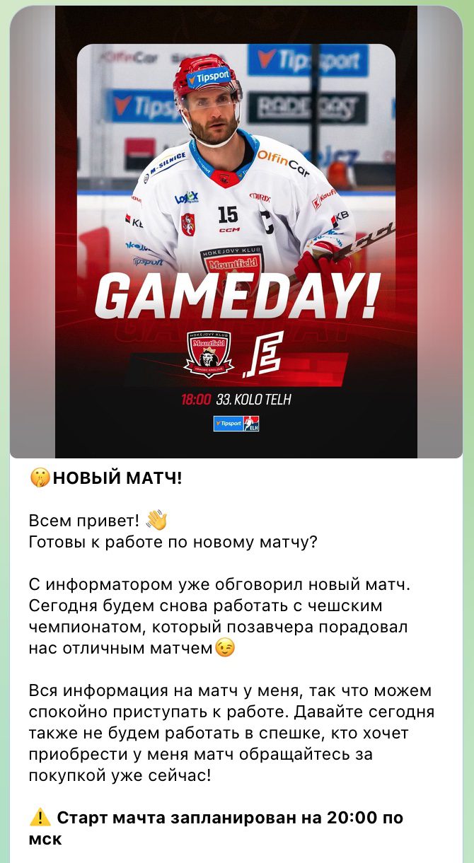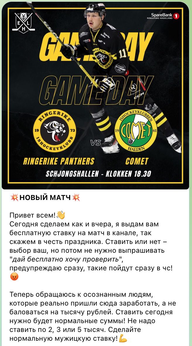 Практически ежедневно в ленте телеграмм канала публикуются анонсы хоккейных матчей, на которые у каппера есть инсайдерская информация. При этом новичкам, судя по отзывам, часто дают советы какую букмекерскую контору лучше выбрать, а также по части управления банком. Кроме того, капер иногда комментирует заинтересовавшие его события, происходящие в спортивном мире.