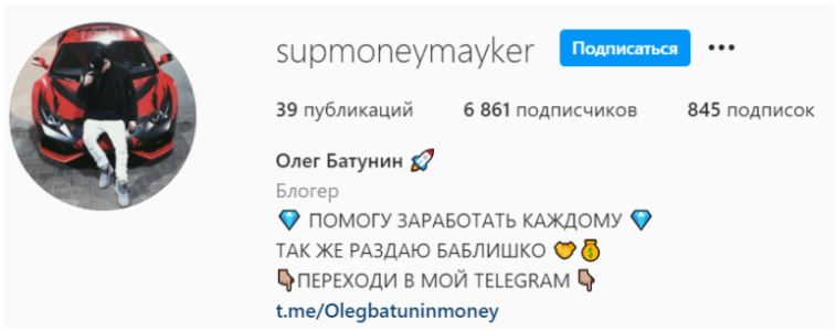 Олег Батунин – Телеграмм канал (а также есть и страница в Инстаграм) парня, предлагающего схемы для обыгрывания казино. Канал насчитывает более 15 000 подписчиков, вероятнее, накрученных. Деятельность Олега довольна сомнительна, поэтому мы детально рассмотрим его проект.