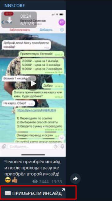 Цена на инсайды Ннскоре в Телеграмм