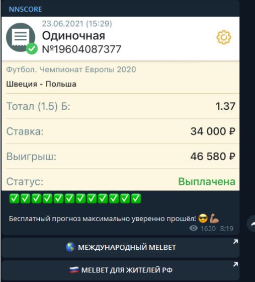 Как мы и ожидали, инсайдер только и делает, что постит скрины сыгравших купонов из рекламируемой в каждом после БК. Речь о верифицированной статистики проекта Nnscore в Телеграмм не идет – ОТЗЫВЫ НАШИ СНОВА НЕГАТИВНЫ!
