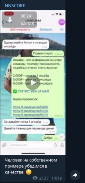 Реальные отзывы об инсайдах Nnscore и слив канала в Телеграмме