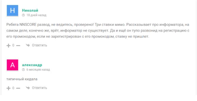 Реальные отзывы о Nnscore долго искать не пришлось. Все указывают на Телеграмм каппера Nnscore как МОШЕННИКА!