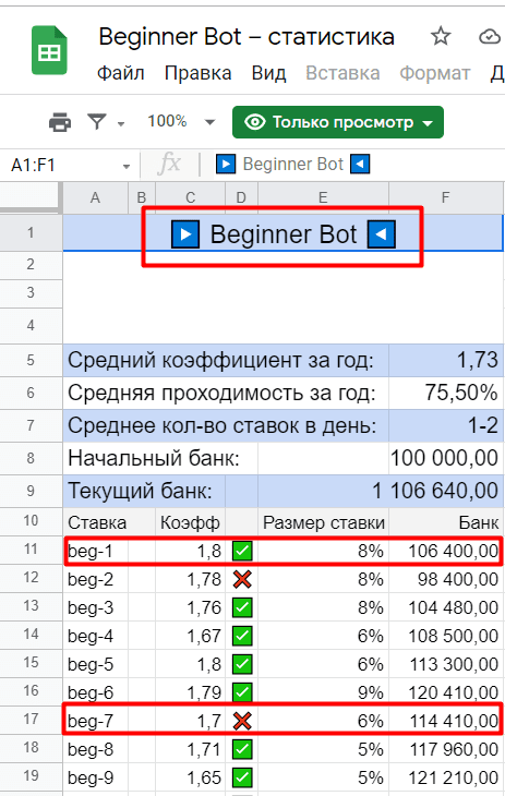Таблицы, которые находятся по ссылкам, содержат в себе всю отчётность по каждому из прогнозов капперов бота Promax в Телеграмм, а именно: