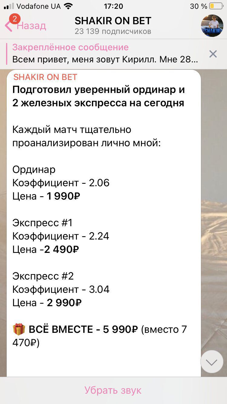 Каппер Shakir On Bet – отзывы, разоблачение Телеграмм канала