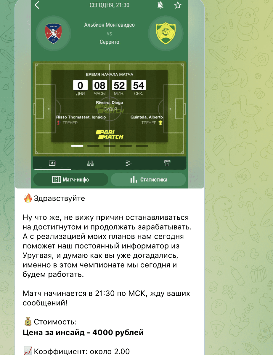 Обзор Телеграмм канала с инсайдерскими матчами Станислав Станишевский